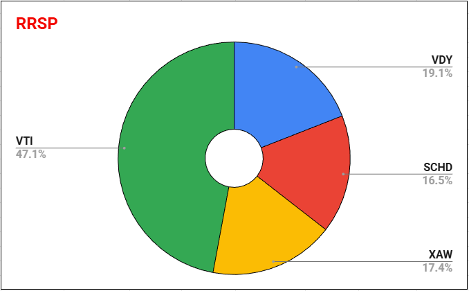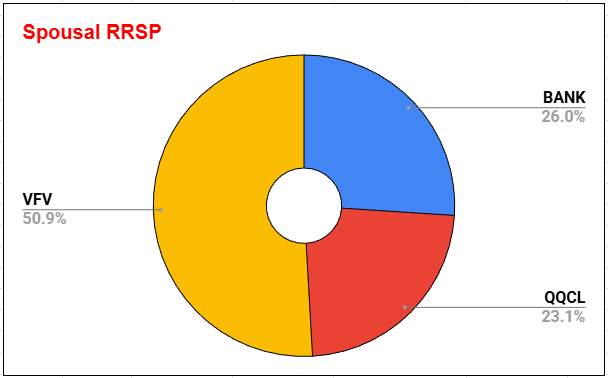 Honestly we couldn’t decide what to buy in the spousal RRSP, BANK has been killing it and is by far the best performer since we opened the spousal almost one year ago so we bought some of all 3. My RRSP didn’t see any action this month other than a nice fractional VDY DRIP