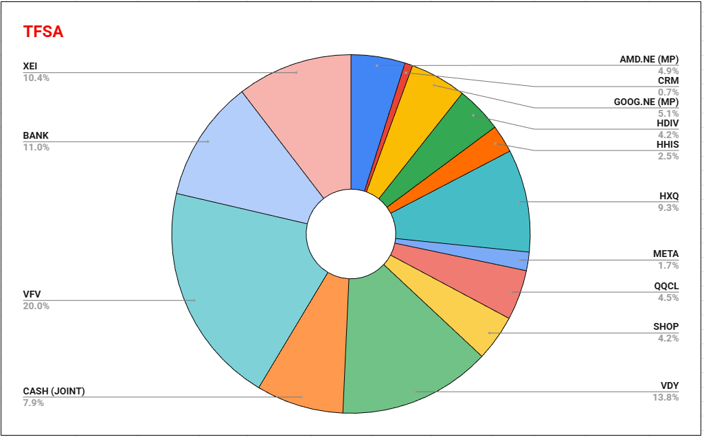 - may have to slowly transition out of CASH throughout the year as I earn money to replace it with in the HISA. My goal is to not take any withdrawals out of my TFSA moving forward.