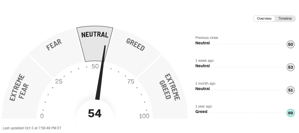 Not much change here over the last month. Still sitting on the high end of neutral with the odd bounce into greedy territory over the month.