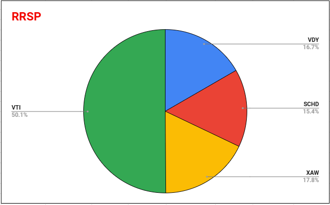 With all the dividends this month particularly from SHCD and VTI this month I decided to pickup a relatively large amount of VTI this month. Was a little nerve racking at all time highs, but, as mentioned earlier dollar cost averaging is still the name of my game. This makes VTI over 50% of my RRSP for the first time. Will likely average into other holdings for the rest of the year.